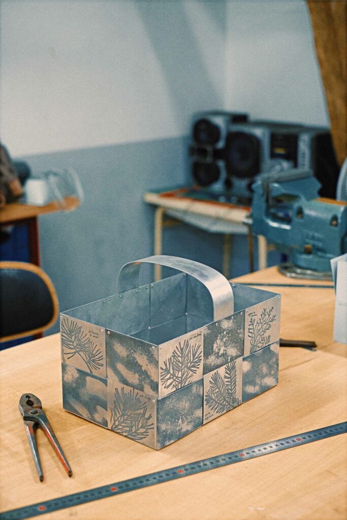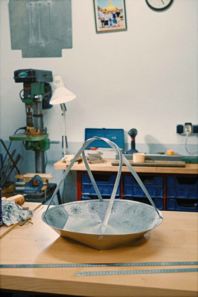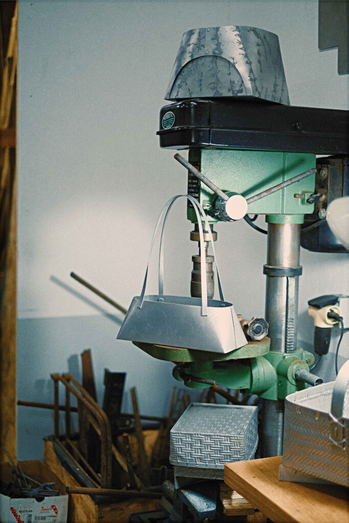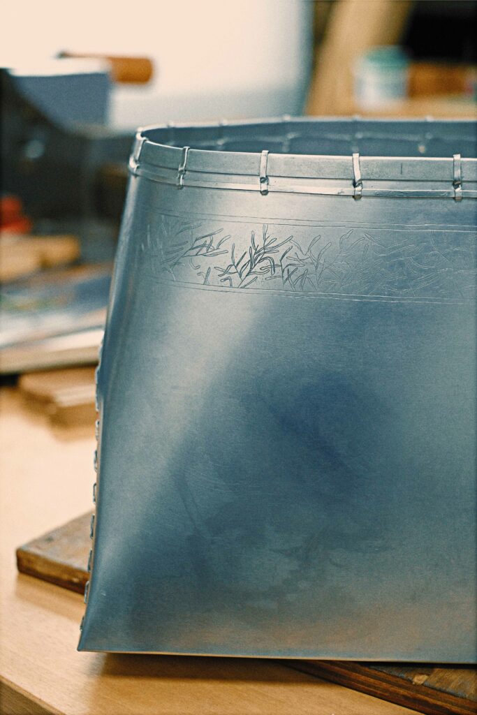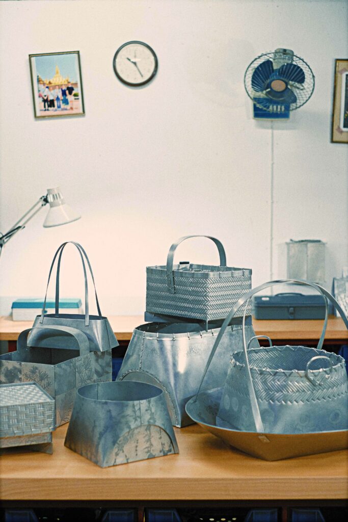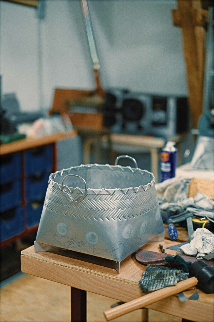 Research around the adpatation of traditional basketry techniques to the work of sheet aluminium.
