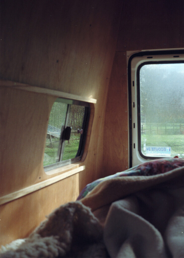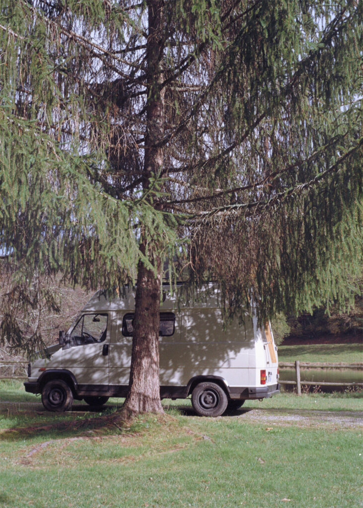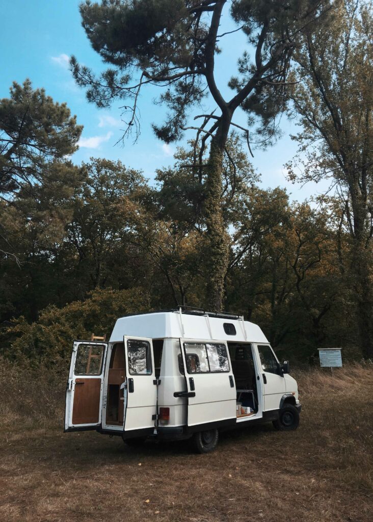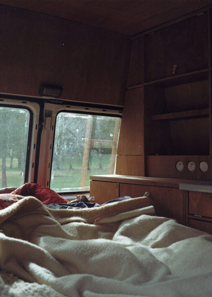 Conversion of a work van into a camper to live on construction sites and transport materials.